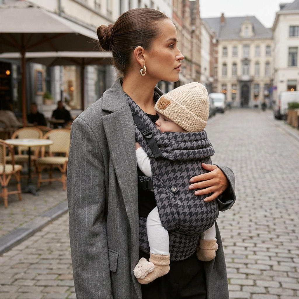 Our carrier supports front-inward and back-carry positions for optimal safety and bonding. Outward-facing is possible after 12 months — but we recommend inward for hip development and calm connection.